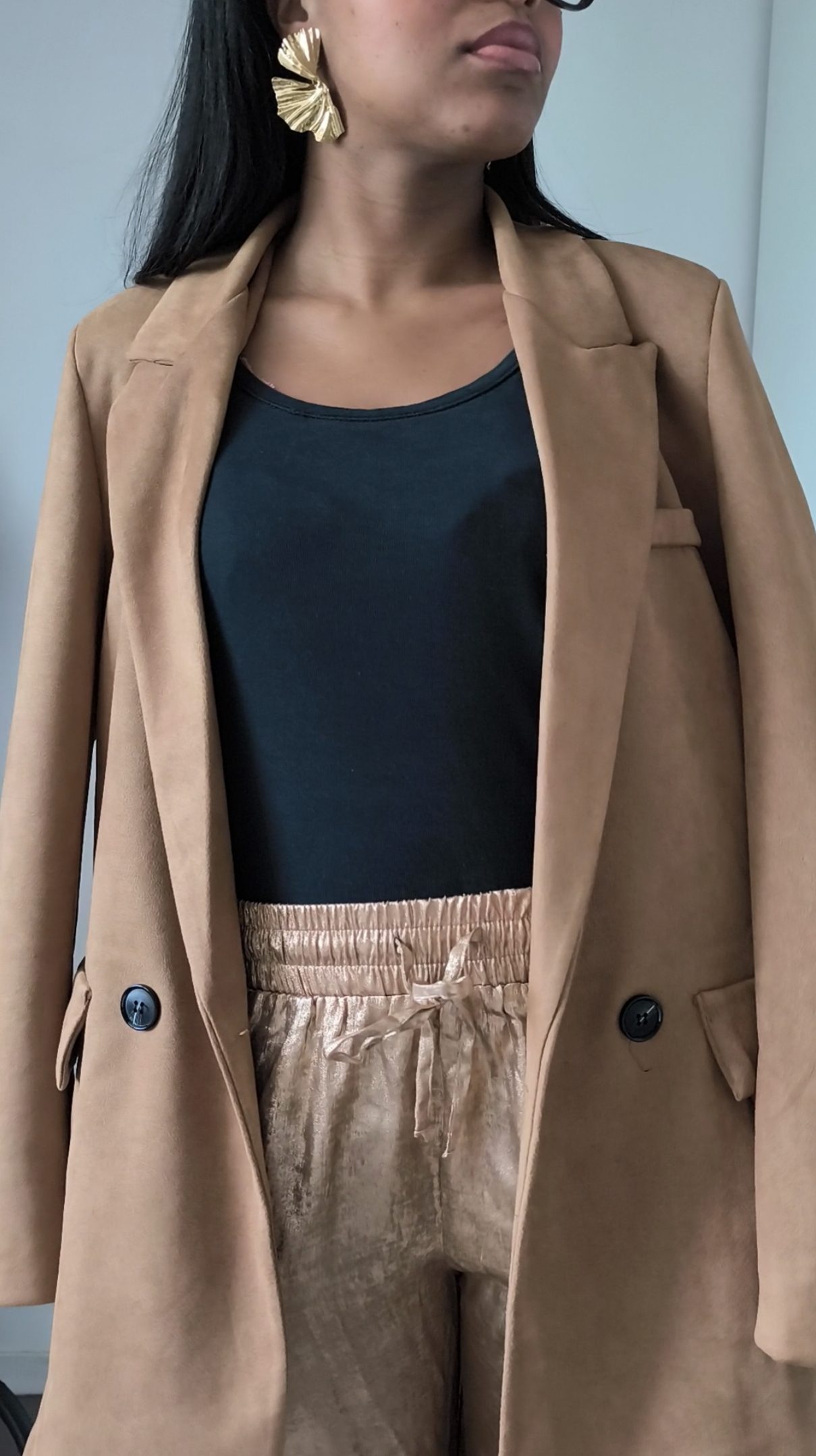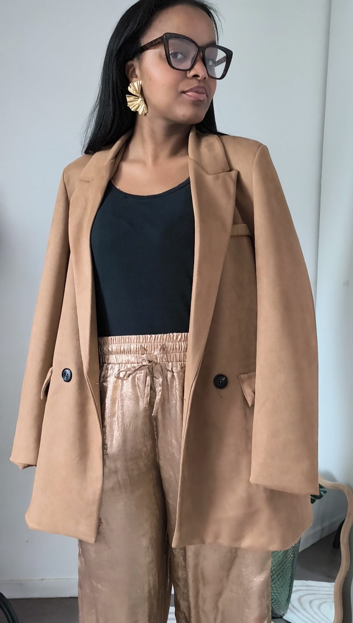 Pantalon satin doré femme – fluide et lumineux