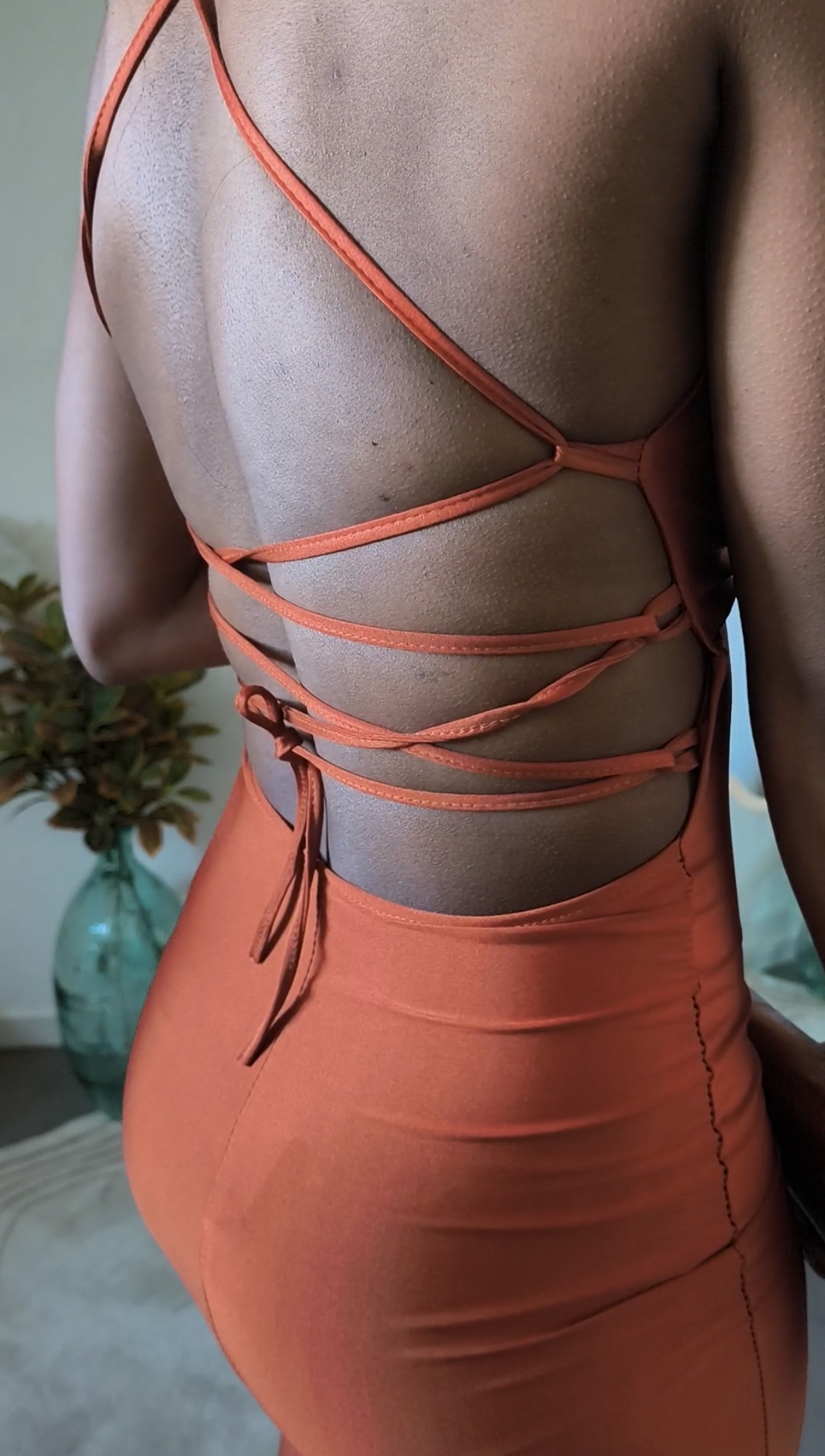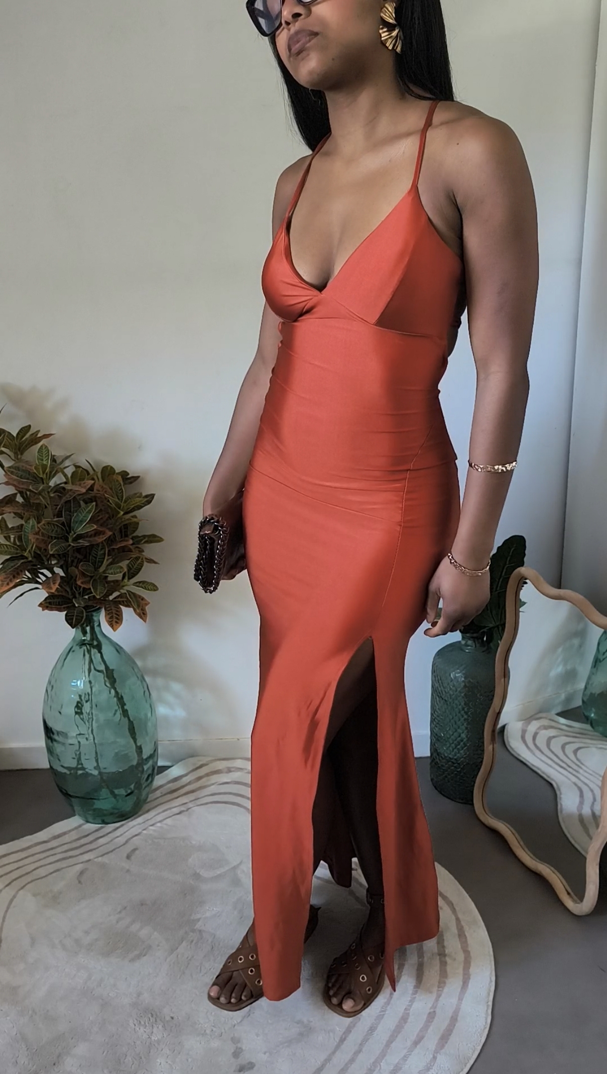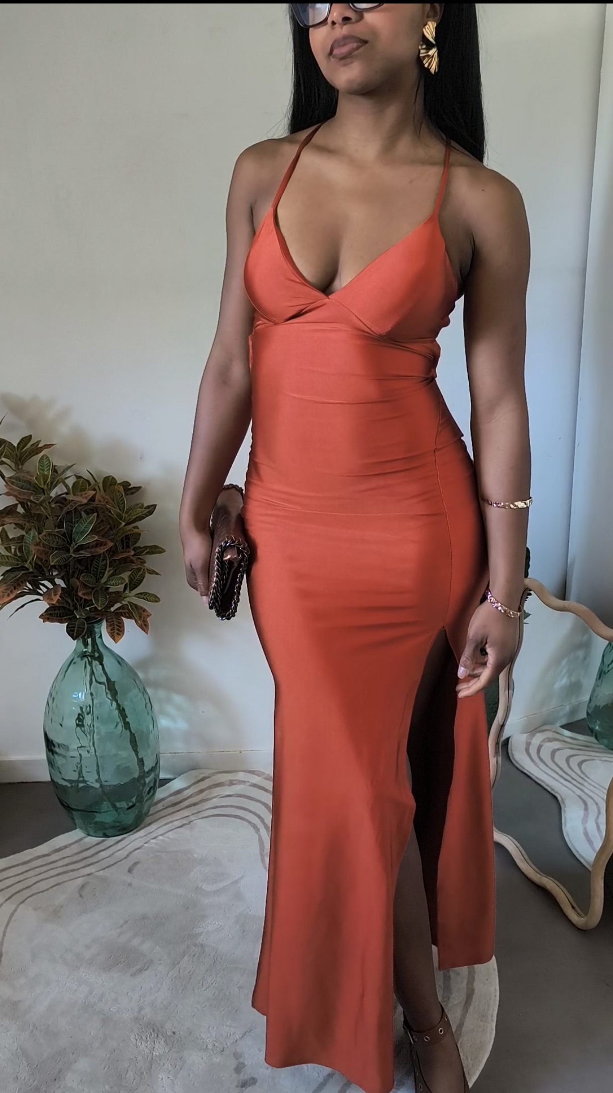 Robe longue fendue dos nu – rouille